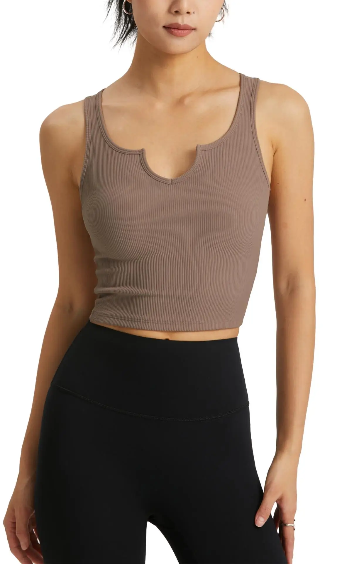 TOPKO Ready to Ship Solid Breathable Fixed Cup Sports Underwear Women's Summer Ribbed V Lead Walking Yoga Bra